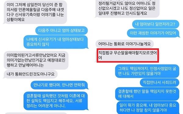 ¹è¿ì ±¸Çý¼±Àº ³²ÆíÀÎ ¹è¿ì ¾ÈÀçÇö°ú ³ª´« ¹®ÀÚ¸Þ½ÃÁö¸¦ 8¿ù18ÀÏ ÀÚ½ÅÀÇ ÀνºÅ¸±×·¥¿¡ °ø°³Çß´Ù. ¡°±Çűâ·Î º¯½ÉÇÑ ³²ÆíÀº ÀÌÈ¥À» ¿øÇÏ°í °¡Á¤À» ÁöŰ·Á ÇÕ´Ï´Ù¡±¶ó´Â ±ÛÀÌ´Ù. ¹®ÀÚ ³»¿ëÀ» º¸¸é ±¸Çý¼±Àº ¾ÈÀçÇöÀÌ ÀÚ½ÅÀÇ ¾î¸Ó´Ï¿Í Á÷Á¢ ¸¸³ª µÎ ºÎºÎÀÇ ÀÌÈ¥À» ÀüÇÏ±æ ¹Ù¶ú´Ù. ±×·¯³ª ¾ÈÀçÇöÀº ¡°(¾î¸Ó´Ï¿Í) ÅëÈ·Î ÀÌ¾ß±æ ³ª´©°Ú´Ù. Á÷Á¢ ¸¸³ª ¹«½¼ ¸»À» ÇØ¾ß ÇÒÁö ¸ð¸£°Ú´Ù¡±°í Çß´Ù. ±¸Çý¼±Àº ¾ÈÀçÇöÀÇ ¸ð½À¿¡ ºÐ³ëÇØ °á±¹ ¹®ÀÚ¸¦ °ø°³Çß´Ù.
