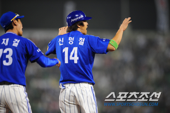 11ÀÏ Àá½Ç¿¡¼ ¹ú¾îÁø µÎ»ê°ú »ï¼ºÀÇ PO 4Â÷Àü,3ȸÃÊ ¹«»ç 1·ç¿¡¼ 1·çÁÖÀÚ »ï¼º ½Å¸íöÀÌ µÎ»ê ¼±¹ß È«»ó»ïÀÇ °ßÁ¦µ¿ÀÛ¿¡ ³î¶ó Ȳ±ÞÈ÷ 1·ç·Î ½½¶óÀ̵ùÀ» Çß´Ù. ½Å¸íö°ú ±èÀç°ÉÄÚÄ¡¿Í ¼±µ¿¿°¨µ¶ÀÌ È«»ó»ïÀÇ º¸Å©¸¦ °·ÂÈ÷ ÁÖÀåÇßÁö¸¸ ¹Þ¾Æµé¿©ÁöÁö ¾Ê¾Ò´Ù.