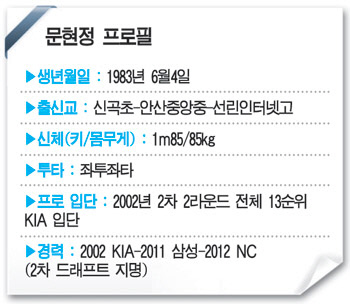 ¹®ÇöÁ¤Àº ÇöÀç NCÀÇ ¿Þ¼Õ ÇʽÂÁ¶´Ù. ¾Ö¸®Á¶³ª¿¡¼ Ä¡¸¥ ÇÁ·ÎÆÀ°úÀÇ 5Â÷·Ê ¿¬½À°æ±â Áß 4°æ±â¿¡ ³ª¿Ô´Ù. ÁÖÀÚ°¡ ÀÖ´Â »óȲ¿¡¼ »ó´ë ¿Þ¼ÕŸÀÚ°¡ ³ª¿À¸é ¾î±è¾øÀÌ ¸¶¿îµå¿¡ ¿Ã¶ú´Ù. 1¨øÀÌ´× 2½ÇÁ¡(1ÀÚÃ¥). ÀÌ´× ½ÃÀÛ°ú ÇÔ²² ¸¶¿îµå¿¡ ¿À¸¥ ³Ø¼¾Àü¿¡¼ ½ÇÃ¥ÀÌ °ãÃÄ ½ÇÁ¡ÇßÀ» »Ó, °íºñ´Â ¸ðµÎ ¸·¾Æ³Â´Ù.