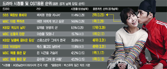 OST°¡ µå¶ó¸¶ ¿ÜÀûÀ¸·Î âÃâÇÏ´Â ºÎ°¡°¡Ä¡µµ ¸¸¸¸Ä¡ ¾Ê´Ù. ½Ãû·ü 40%¸¦ ±â·ÏÇÏ¸ç ±¹¹ÎÀûÀÎ Àα⸦ ¸ð¾Ò´ø MBC 'ÇØ¸¦ ǰÀº ´Þ'ÀÇ °æ¿ì, ÃÑ 6°îÀÌ ¼ö·ÏµÈ OSTÀÇ À½¿ø ¼öÀÍÀÌ 10¾ï¿ø¿¡ À̸¥´Ù. ¸°ÀÌ ºÎ¸¥ '½Ã°£À» °Å½½·¯'´Â Ƽ¾Æ¶óÀÇ '·¯ºñ´õºñ'¸¦ Á¦Ä¡°í À½¿øÂ÷Æ® 1À§¸¦ ¼®±ÇÇÏ´Â Àú·ÂÀ» ¹ßÈÖÇϱ⵵ Çß´Ù.