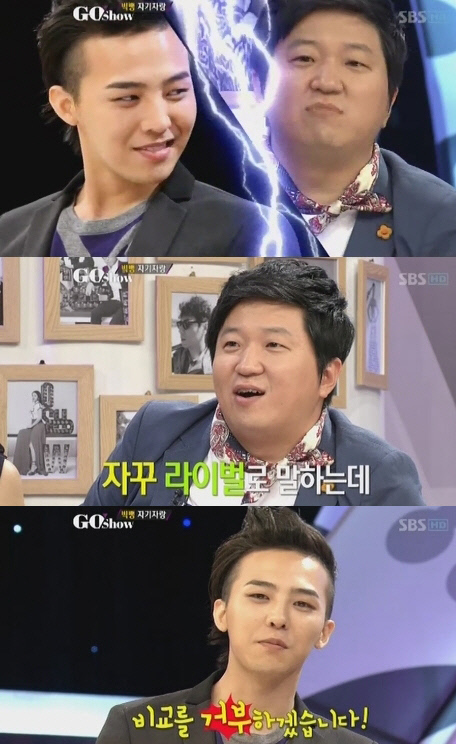 20ÀÏ ¹æ¼ÛµÈ SBS '°í¼î'¿¡ Ã⿬ÇÑ Áöµå·¡°ïÀº Àڱ⠼Ұ³¸¦ ÇÏ´ø µµÁß ÀúÀ۱Ƿá¿Í ÆÐ¼Ç µî ÀÚ½ÅÀÇ ÀåÁ¡À» ³ª¿Çß´Ù. ±×´Â Á¤Çüµ·ÀÌ ÀÚ½ÅÀÇ ÆÐ¼Ç¿¡ ´ëÇÑ ÀڽۨÀ» µå·¯³»¸ç "Áöµå·¡°ï º¸°íÀÖ³ª"¶ó°í ¸»ÇÑ °ÍÀ» ¾ð±ÞÇϸç "¿ÊÀ» ¹þÀ» ¼ö ¾ø¾î ÀÔ¾úÀ» »ÓÀε¥ ÆÐ¼Ç¾ÆÀÌÄÜÀ̶ó ºÎ¸£´õ¶ó. Á¤Çüµ·ÀÌ ³»°Ô 'º¸°íÀÖ³ª'¶ó°í Çϴµ¥ ¿À´Ã ÀÌÈÄ·Î ºñ±³¸¦ °ÅºÎÇϰڴÙ"°í ¹àÇû´Ù. ÀÌ¿¡ Á¤Çüµ·Àº Áöµå·¡°ïÀÇ ¿Ãºí·¢ ÆÐ¼ÇÀ» ÁöÀûÇϸç "¿ì¾û°°´Ù"°í ³î·È´Ù. ¶Ç Áöµå·¡°ï°ú ÇÔ²² Áï¼® ÆÐ¼Ç ´ë°áÀ» ÆîÃÄ ´«±æÀ» ²ø¾ú´Ù.
