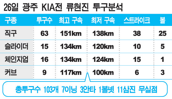 À̳¯ ·ùÇöÁøÀº ÃÑ 103°³ÀÇ °øÀ» ´øÁ³´Ù. ¿ª½Ã ÁÖ¹«±â´Â ÃÖ°í 151§°±îÁö ³ª¿Â Á÷±¸. ·ùÇöÁøÀº ÃÑÅõ±¸¼ö Áß 61%¿¡ ÇØ´çÇÏ´Â 63°³ÀÇ Á÷±¸¸¦ ´øÁ³´Ù. Á÷±¸ ºñÁßÀÌ ¾à°£ ³ô¾Ò´Ù°í ÇÒ ¼ö ÀÖÁö¸¸, ¿¹Àü°ú Å©°Ô ´Ù¸§ ¾ø´Â ÆÐÅÏÀÌ´Ù.