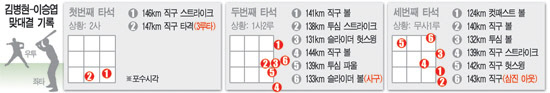 ¿ª½Ã³ª ±èº´Çö¿¡°Ô ÁŸ ¶óÀÎÀº ¾ÕÀ¸·Îµµ °úÁ¦°¡ µÉ µíÇÏ´Ù. ±èº´ÇöÀÇ °ø½Ä ±â·ÏÀº 4¨øÀÌ´× 6¾ÈŸ 6Å»»ïÁø 3½ÇÁ¡. ±×·±µ¥ 6¾ÈŸ °¡¿îµ¥ 5°³°¡ »ï¼º 1¹øºÎÅÍ 5¹ø±îÁöÀÇ ÁŸ ¶óÀο¡¼ ³ª¿Ô´Ù. ÁŸÀÚ¸¦ »ó´ë·Î 4»ç±¸ 2°³µµ ±â·ÏÇß´Ù.