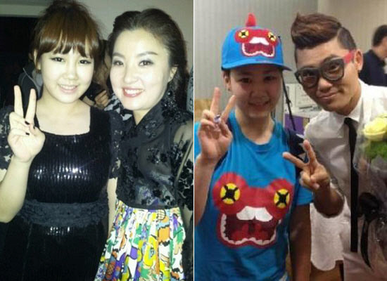 ¹ÚÁö¹ÎÀº ´ëÇѹα¹ ±¹¾Ç ´ëÇ¥ ¹ÌÀÎ ¿ÀÁ¤ÇØ, °¡¼ö ±è¹ü¼ö¿Í ÇÔ²² ÂïÀº »çÁø¿¡¼ 'KÆË½ºÅ¸' ¹æ¼Û ¶§¿Í´Â ´Ù¸¥ ¾ó±¼ »ìÀÌ ½ï ºüÁø ÇÛ¾¦ÇÑ ¸ð½ÀÀ¸·Î ¹° ¿À¸¥ ¹Ì¸ð¸¦ °ú½ÃÇØ ½Ã¼±À» ¸ðÀº´Ù.
