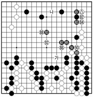 〈제7보〉(81~93)=김지석의 기풍은 선(線)이 굵고 개성이 뚜렷하다. 기질적으로 '잔돈푼'보다는 '목돈'을 추구한다. 힘이 장사여서 상대 대마가 수시로..