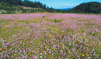 - 충북 괴산군 서부리의 한 야산. 좁은 길을 따라 한참을 올라가니 산 중턱 들판에 연분홍 코스모스가 끝없다. 동화 같은 풍경. 드론의 힘을 빌려 꽃밭..