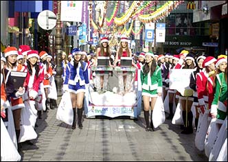 Super high speed ISP, Thrunet, is hosting a 100 Santa Clauses event, in celebration of the opening of free Internet content website "Multi Plus Zone" at www.multizone.thrunet.com, from Sunday to Monday. The Santas are to give away 50,000 pieces of bread to passers-by as Christmas gifts.