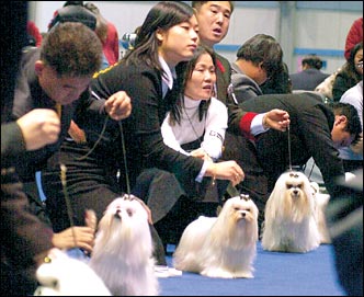 Well-groomed pet dogs are shown off at the FCI Seoul International Dog Show, held at the COEX, Samsung-dong, Seoul, Sunday.