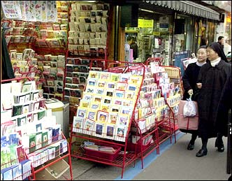 Shops in the Namdaemun traditional market in Seoul began selling Christmas cards Monday with prices ranging from W1,000 to W5,000.