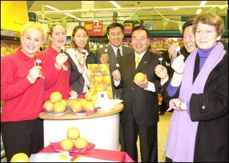 British supermarket chain Tesco introduced Korean pears to its markets, in time for President Kim Dae-jung¡¯s visit to the United Kingdom. Governor of Geeing Province, Im Chang-yeol, and Tesco executives attended a tasting event, at one branch store in a suburb of London on Sunday.