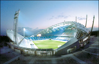 Seogwipo Stadium opened Tuesday, the last of ten specially constructed venues for the 2002 World Cup. The official opening ceremony will feature a friendly match between Korea and the US.