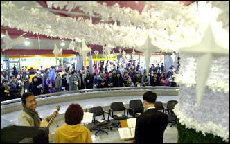 With Christmas some twenty days ahead, trees were lit at Euljiro1-ga Station on subway line number two, Thursday afternoon.