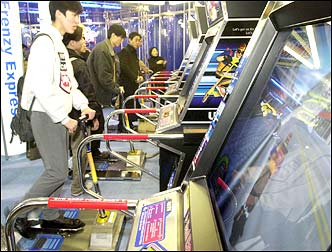Visitors to the KAMEX 2001 (Korea Amusement Game World Expo) enjoy trying brand-new arcades and online games from 110 game makers Friday. The exhibition lasts until December 10.