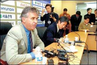 Guus Hiddink attends a press conference, held one year after taking up the post of head coach for the national soccer team, at the Korean Football Association building Monday.