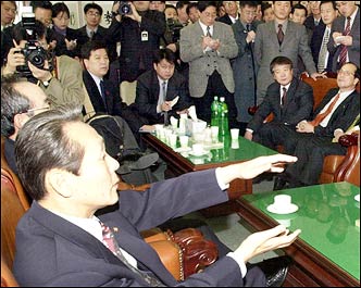 Lawmakers of the ruling and opposition parties argue over corporate tax cuts Friday at the National Assembly Budget and Accounts Committee.