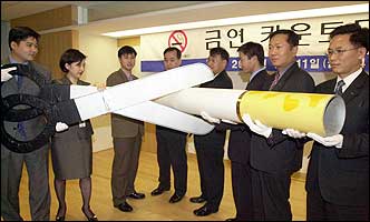 Employees at Korea Asset Management Corporation symbolically cut a cigarette with scissors at ASEM Tower, Seoul to mark the start of an anti-smoking campaign.
