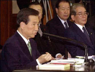 President Kim Dae-jung answers reporters' questions at his New Year's press conference at Cheong Wa Dae Monday.