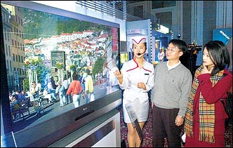 LG Electronics unveils its new HD digital TV model "Xcanvas" at a Tuesday showcase in the Lotte Hotel Jamsil. Xcanbas features a five times clearer display than previous TVs with a digital set top box.