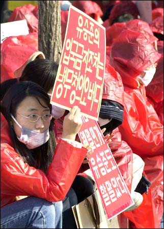 Some 500 fans of singer Yu Seung-jun, whose suspected military service evasion raised a dispute, gather in front of SBS studio in Deungchon-dong, Seoul, Sunday, to protest against a ban on his entry into Korea.