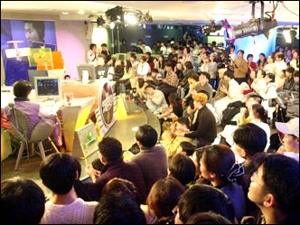 More than 10,000 gaming fans flocked to "Megawebstation," a large PC room in the COEX, Seoul, Friday, to watch pro-gamers playing and competing in an open broadcast.
