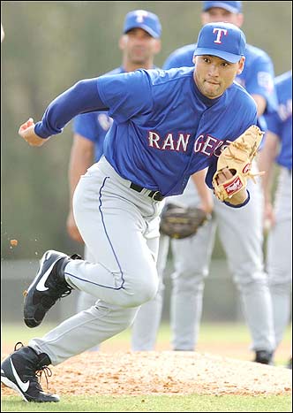 Park Chan-ho of the Texas Rangers practices fielding after a pitch at spring camp in Florida, Saturday.
