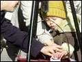 A child donates money to a Salvation Army charity pot in front of City Hall, Tuesday,...