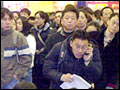 Seoul Railroad Station's ticket reservation counter for the Honam Line is busy...