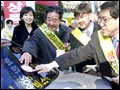 TV Actor Choi Bul-am and other stars distribute "No Smoking" stickers during an anti-smoking campaign...