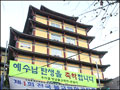A Buddhist temple in Daegu displays a sign celebrating the birth of Christ,...