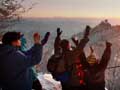 Mountain-goers celebrate the first sunrise of 2002 at Baekundae, atop Mount Bukhan, Seoul, Tuesday.