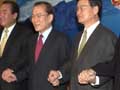 Grand National Party leader Lee Hoi-chang wishes for a presidential election victory Wednesday along with party executives...