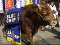 Aekyung Industrial Co. staged a street performance with a stout cow, the symbol of a bullish market...