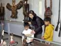 Elementary school kids and their parents enjoy folk crafts exhibited at the African Art Museum...
