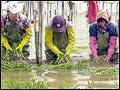 Farmers harvest dropwort (an Old World species of Spiraea (S. filipendula), with finely cut leaves) in fields...