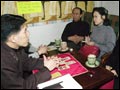 Japanese tourists have their fortune read at the cafe "Date with Fortuneteller,"...