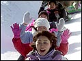 As the temperature drops to true winter norms, Wednesday, children ride rubber sled down slopes in Everland...
