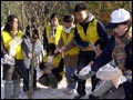 Participants at a 'Wild Bird and Animal Feeding Event' scatters corn, wheat grains and beans ...