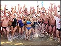 Some 1,500 participants in the 15th Westin Chosun Beach Polar Bear Swim Contest jump into the water...