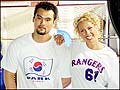 Park Chan-ho, number 61 in the Texas Rangers and team model have their picture taken Saturday ...