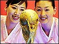 The FIFA World Cup trophy is being displayed in the Seoul Finance Center lobby...