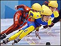 Ko Gi-Hyun (front), winner of the women's 1,500 meters short-track speed skating gold medal...