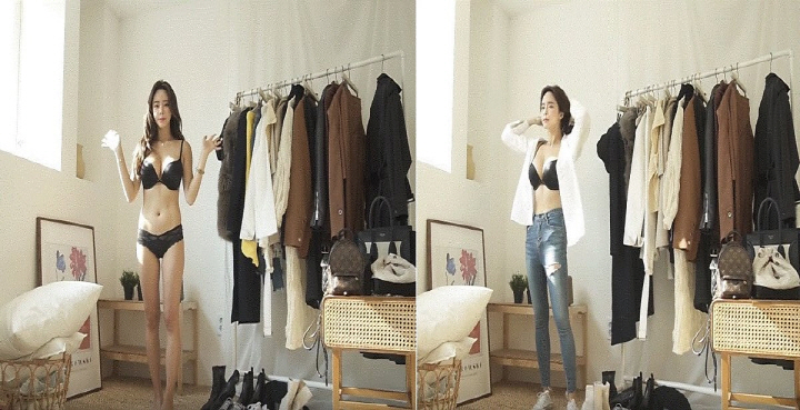 ¼Ó¿Ê¸¸ ÀÔÀº ¸ðµ¨ÀÌ È¸é¿¡ ³ª¿Â´Ù. ¿·¿£ °¥¾ÆÀÔÀ» ¿ÊÀÌ °É¸° Çà°Å°¡ ÀÖ´Ù. »ó¡¤ÇÏÀǸ¦ ¸ðµÎ ÀÔ°í ½Å¹ß±îÁö ½Å´Â´Ù. ¿ÊÀ» ´Ù ÀÔ´Â µ¥ 10Ãʰ¡ ä °É¸®Áö ¾Ê´Â´Ù. ¿Ï¼ºµÈ Äڵ𸦠»Ë³»´Â ½Ã°£±îÁö Æ÷ÇÔ, ÀÏÁÖÀÏ µ¿¾È ÀÔÀ» ¿ÊÀ» ¸ðµÎ º¸¿©Áִµ¥ 5ºÐÀ̸é ÃæºÐÇÏ´Ù. ¿ÊÀ̳ª ÆÐ¼Ç ¼Òǰ Á¤º¸°¡ ¿µ»ó ¼Ó¿¡ ÀÚ¸·À¸·Î ¶Ç´Â ¿µ»ó Á¤º¸¶õ¿¡ ³ª¿Â´Ù.