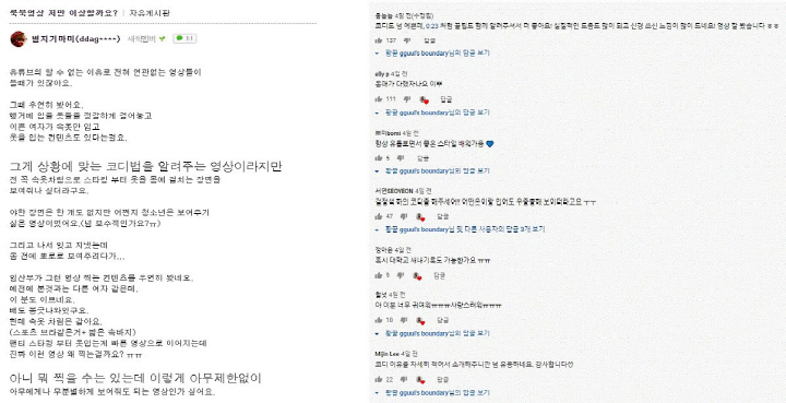 ´ë³õ°í ±¤°í¸¦ ÇÏÁö¸¸ ½ÃûÀÚµéÀÇ ¹ÝÀÀÀº µû¶ó¼ ÄÚµðÇϱâ ÁÁ´Ù´Â ±àÁ¤Àû ¹ÝÀÀÀÌ ¸¹´Ù. ¸ðµ¨ÀÌ ¼Ó¿Ê Â÷¸²À¸·Î µîÀåÇÏ´Â ¸¸Å ¸ðµ¨ üÇüÀ» º»Àΰú ºñ±³ÇÒ ¼ö ÀÖ¾î ¿ÊÀ» °í¸£±â À¯¿ëÇÏ´Ù´Â °ÍÀÌ´Ù. ¶Ç ¼ÅÃ÷ ³Ö´Â ¹ý, ¿øÇǽº ²ö ¹´Â ¹ý µî Á¾·ù¿¡ µû¶ó ¿Ê ÀÔ´Â ¹æ¹ýµµ Âü°íÇÒ ¼ö ÀÖ´Ù. ´ñ±Ûâ¿£ ¡®Ã¼ÇüÀÌ ºñ½ÁÇØ¼ Äڵ𿡠µµ¿ò µÈ´Ù¡¯ ¡®Äڵ𠿵»ó ´öºÐ¿¡ ¼îÇÎÇϱ⠽¬¿öÁ³´Ù¡¯ ¡®³ÐÀº ¾î±ú¸¦ º¸¿ÏÇÒ ¼ö ÀÖ´Â Äڵ𵵠±Ã±ÝÇÏ´Ù¡¯ ¡®¿äÁò ÀÌ·±½ÄÀ¸·Î ÆÐ¼Ç ¼Ò°³ÇÏ´Â ºÐµé ³Ê¹« ÁÁ´Ù¡¯ µî ¹ÝÀÀÀÌ ÀÖ´Ù. À¯Æ©ºê´Â ÀڱⰡ ±¸µ¶ÇÑ Ã¤³Î¿¡ ¿Ã¶ó ¿Â ¿µ»óÀ» º»´Ù. ±¸µ¶ ä³ÎÀÌ ¾Æ´Ï´õ¶óµµ À¯Æ©ºê°¡ ÆÇ´ÜÇϱ⿡ ÁÁ¾ÆÇÒ °Í °°Àº »ç¶÷¿¡°Ô ¸ÂÃã ¿µ»óÀ» ÃßõÇÑ´Ù. ±àÁ¤ÀûÀÎ ´ñ±ÛÀÌ ¸¹ÀÌ ³ª¿Ã ¼ö¹Û¿¡ ¾ø´Â ±¸Á¶´Ù.