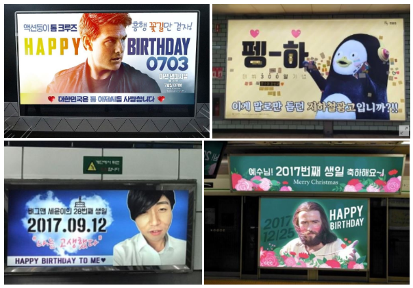 ÁöÇÏö ³»ºÎ Àüü¸¦ ±¤°í·Î ä¿ì´Â ·¦ÇÎ ±¤°íµµ ÀÖ´Ù. BTS ÆÒµéÀº 2018³â 11¿ù 30ÀÏ ÁöÇÏö 2È£¼± ÇÑ ÄÀ» BTS ±¤°í·Î ²Ù¸ì´Ù. ÀÌ¿¡ ¾Õ¼ 2018³â 3¿ù¿¡´Â EXO ½Ã¿ì¹Î ÆÒµéÀÌ »ýÀÏÀ» ±â³äÇØ 7È£¼± 8Ä Àüü¸¦ ½Ã¿ì¹Î ±¤°í·Î µµ¹èÇß´Ù. ÀÌ Àü¿¡µµ ÁöÇÏö 1~2Ä Àüü¸¦ ±¤°íÇÏ´Â »ç·Ê´Â ÀÖ¾úÁö¸¸, ¿Â÷ Àüü¿¡ ±¤°íÇÑ °ÍÀº ½Ã¿ì¹ÎÀÌ Ã³À½À̾ú´Ù. ´ç½Ã 1´Þ ·¦ÇÎ ±¤°í ºñ¿ëÀº 3000¸¸¿øÀ¸·Î ¾Ë·ÁÁ³´Ù.