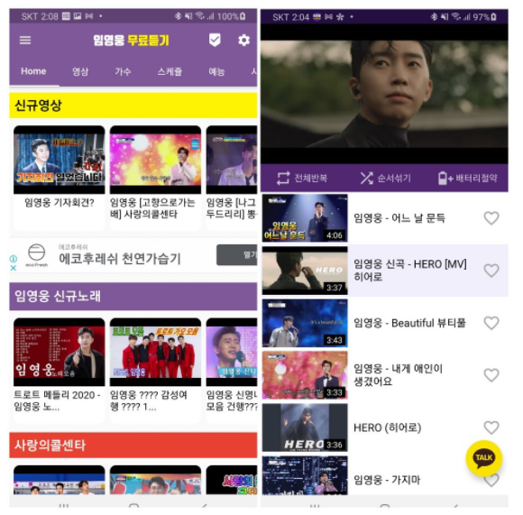¹°·Ð ºÒ¹ý ȤÀº Å»¹ýÀÌ´Ù. ½ÇÁ¦ ´Ù¿î·Îµå Ƚ¼ö ¼ö½Ê¸¸ÀÇ ¡®ÀÓ¿µ¿õ ¹«·áµè±â¡¯¶õ ¾ÛÀ» ±ò¾ÆºÃ´Ù. Ȩ ȸ鿡´Â ÃÖ±Ù ÀÓ¿µ¿õÀÌ ¹æ¼Û¿¡ Ã⿬ÇÑ À¯Æ©ºê ¿µ»óÀÌ ¶á´Ù. ÀÌ¾î ±×ÀÇ ½Å°î, ¡®»ç¶ûÀÇÄݼ¾Å¸¡¯ ¡®ºÀ¼þ¾ÆÇд硯 µîÀÇ ¿µ»óÀÌ À̾îÁø´Ù. À¯Æ©ºê¿¡ ÀÖ´Â ¿µ»óÀ» ±×´ë·Î ±Ü¾î´Ù ºÙ¿´±â ¶§¹®¿¡ À¯Æ©ºê¿¡¼Ã³·³ ¾Û ȸéÀÌ ²¨Áö¸é ¿µ»óÀç»ýÀÌ µÇÁö ¾Ê´Â´Ù. ÁßÀå³âÃþÀÌ ½È¾îÇѴٴ ȸ¿ø°¡ÀÔµµ ÇÊ¿ä¾ø´Ù. ´Ù¸¸ ÀÌ ¾ÛÀ» ÀÌ¿ëÇÏ¸é °è¼Ó ±¤°í¸¦ ºÁ¾ß ÇÑ´Ù. µ¿¿µ»óÀÇ À½¿øÀ» ÃßÃâÇØ ¸¸µç ºÒ¹ý À½¿øÀ̰í, ÀÌ¹Ì °ø°³µÈ À¯Æ©ºê ¹æ¼ÛÀ» ±×´ë·Î À̾î´Ù ºÙÀÎ ¡®¿Á»ó¿Á¡¯ ¿µ»óÀÌ´Ù. ¾ÛÀ» ÀÌ¿ëÇÏ¸ç °è¼Ó ±¤°í¸¦ ½ÃÃ»ÇØ¾ß¸¸ Çß´Ù. ÀÌ ¾Û °³¹ßÀÚ°¡ ¼öÀÍÀ» ¾ò´Â ¹æ½ÄÀÌ´Ù.