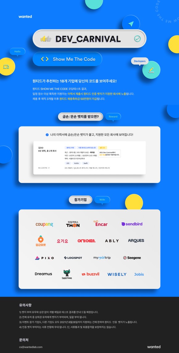 SHOW ME THE CODE ÄÚµùÅ×½ºÆ® °á°ú, ÀÏÁ¤ Á¡¼ö ÀÌ»ó ȹµæÇÑ Áö¿øÀÚ´Â À̷¼ Á¦Ã⠽à ¿øÆ¼µå ÀÎÁõ ¹îÁö°¡ Áö¿øÇÑ È¸»ç¿¡ ³ëÃ⠵˴ϴÙ.