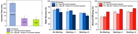 <하이드레이트 시스템에 따른 생성 유도 시간, 회수율, 제거 효율(사진3=숭실대 제공)>